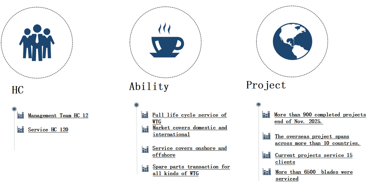 In 2016, Renqiang Energy Jiangyin Co., Ltd. was established in China. And by 2024, TTS New Energy Technology d.o.o. was announced to be established in Croatia. Both companies service the aftermarkets of blade in China and overseas. We are equipped with a professional team, advanced equipment and professional technology. The services we provide cover the blade inspection, blade cleaning.....